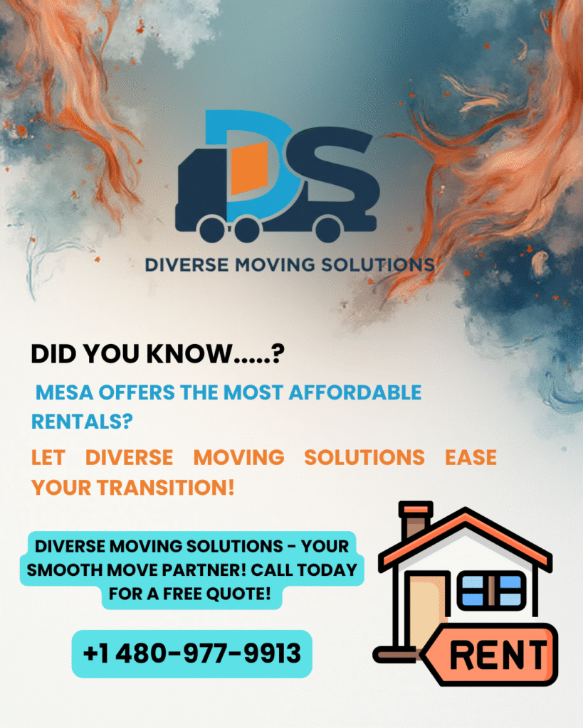 If you’re planning a move in Mesa and want to pair affordable rentals with a professional moving team, Diverse Moving Solutions makes it simple to book a consultation or reserve a moving date. Use this booking form to request service and lock in your move:CLICK HERE