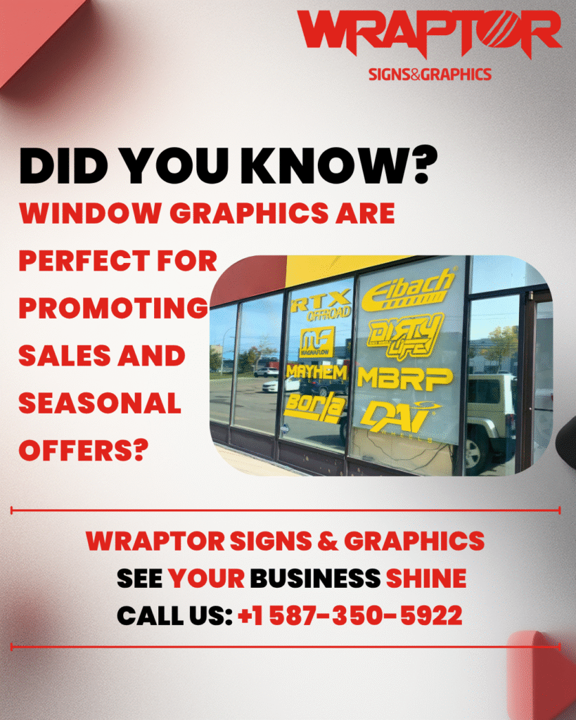 If you want your storefront to work harder, book a design consultation and estimate with Wraptor Signs & Graphics. Whether you’re promoting a seasonal sale, showcasing partner brands, or building long-term identity, window graphics are one of the fastest ways to make your business shine. Call +1 587-350-5922 or visit Wraptor for a custom quote and materials recommendation.